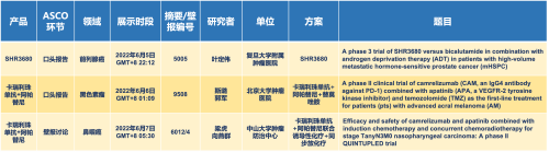 卡瑞利珠单抗联合AG电子医药的另一款创新药法米替尼在甲状腺癌和结直肠癌领域有2项研究被接收为壁报,另有卡瑞利珠单抗联合化疗的4项研究在肺癌、结直肠癌、头颈癌和阴茎癌领域的研究被接收为5份壁报。