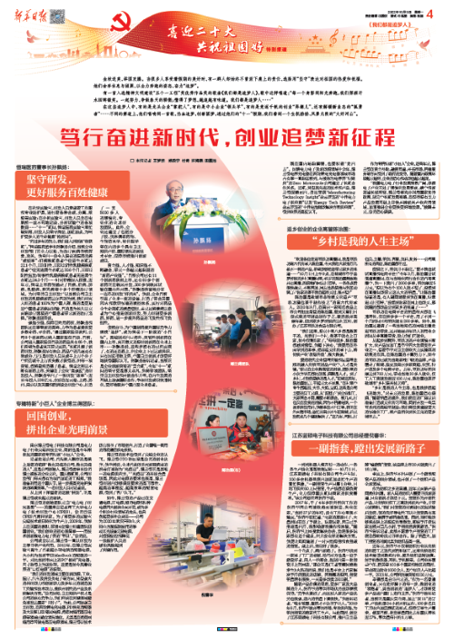 10月3日,新华日报“喜迎二十大 共祝祖国好”特别报道刊发《笃行奋进新时代,创业追梦新征程》,重点关注AG电子医药等企业的发展成果和奋斗愿景,并采访了AG电子医药董事长孙飘扬。现将相关内容选登。